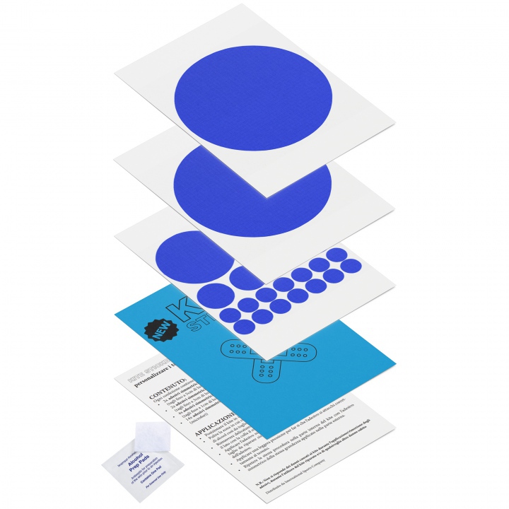 Gli adesivi sono simmetrici per permettere di attaccarne uno sulla parte esterna del tessuto ed una sulla parte interna.